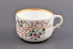 tējas pāris, porcelāns, M.S. Kuzņecova rūpnīca, roku gleznojums, Rīga (Latvija), Krievijas impērija, 20. gs. sākums, h (tasīte) 5.1 cm, Ø (apakštasīte) 13.8 cm, virspusējs mikro nošķēlums uz tasītes malas
