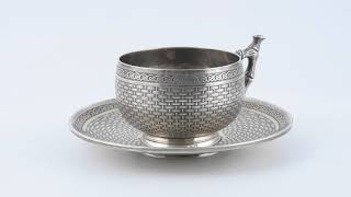 чайная пара, серебро, 950 проба, 228 г, h (чашка, с ручкой) 5.9 см, Ø (блюдце) 14.2 см, Франция